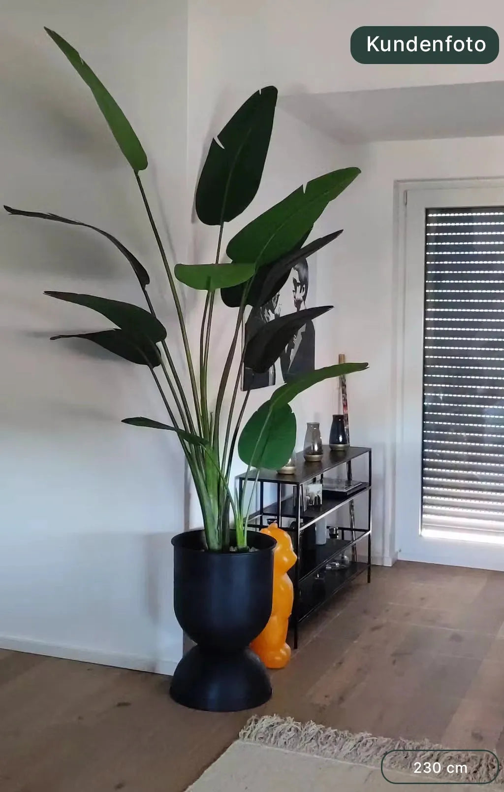 Gerne unterstützen wir dich bei der Auswahl deiner neuen Kunstpflanze und bei der Gestaltung deiner Einrichtung. Unser Kundenservice steht dir hierfür unverbindlich zur Verfügung. Alternative: Achte darauf, dass deine Kunstpflanze nicht zu groß für deinen Raum ist. Ein gutes Maß für die Höhe deiner neuen Kunstpflanze ist ⅓ deiner Deckenhöhe. Ansonsten: Wir sind sicher, dass deine neue Kunstpflanze wunderbar bei dir zuhause aussehen wird. Probier's aus. Zusätzlich: Hier findest du eine Übersicht, wie sich unterschiedlich große Kunstpflanzen im Vergleich zu deiner Einrichtung verhalten.